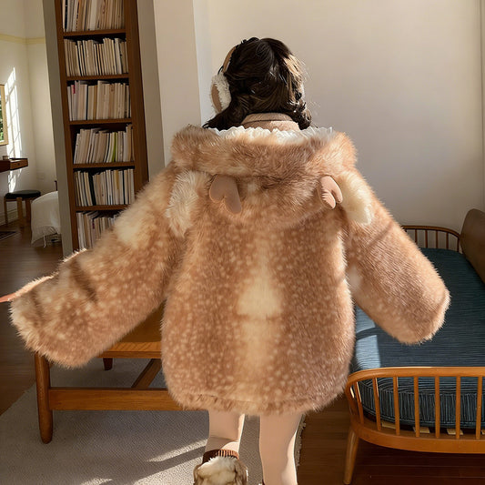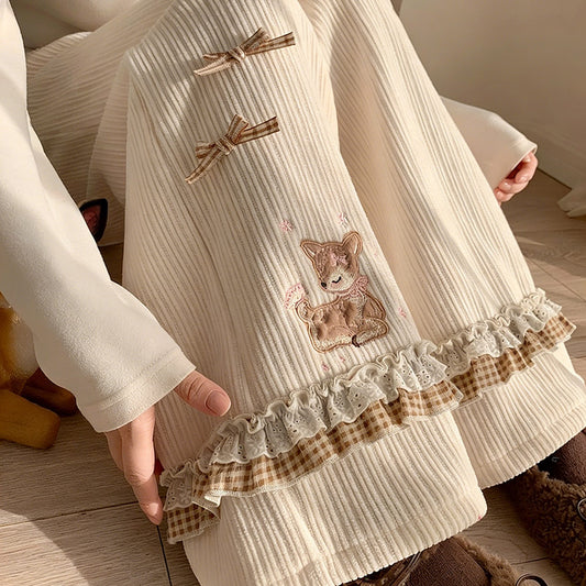 Deer Embroidered Corduroy Fleece Lined Pants SE23812